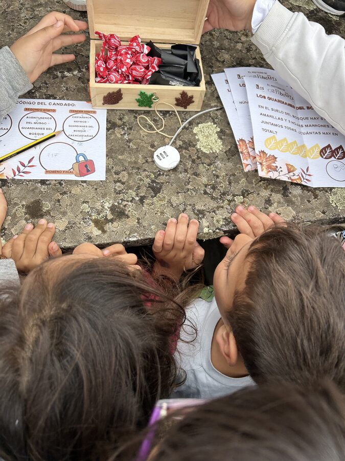 Encontrado el cofre cada grupo fue averiguando las pistas para entre todos abrirlo y nos esperaba una dulce recompensa.