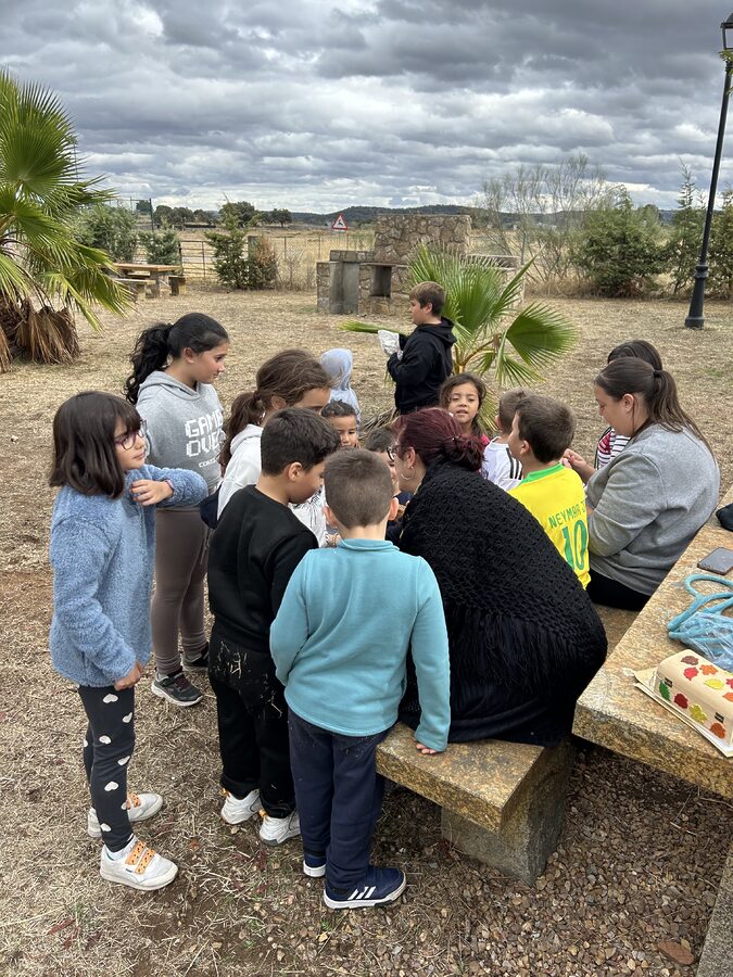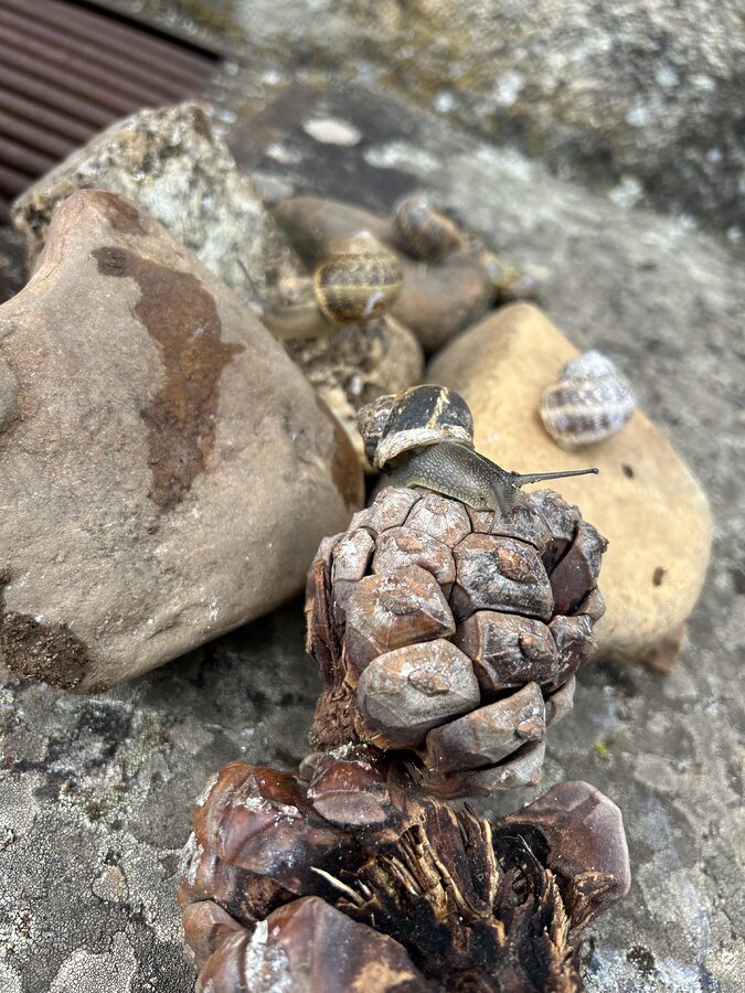 Después nos pusimos a jugar a diferentes juegos populares, los tapones, la petanca y la cuerda. Hicimos casas para los caracoles.
