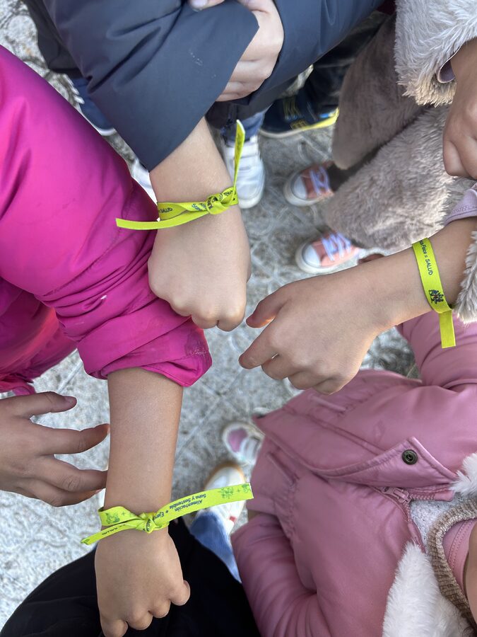 Hoy hemos realizado una salida muy especial para inaugurar el parque como un espacio libre de humo, en colaboración con la Asociación Española Contra el Cáncer (AECC) y dentro del proyecto del centro dedicado a la promoción de la salud. Nos pusimos nuestras pulseras y preparados para la pequeña marcha.