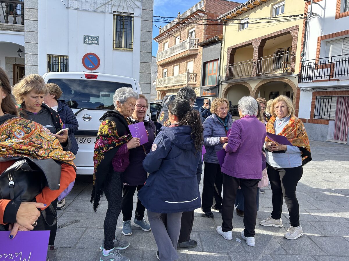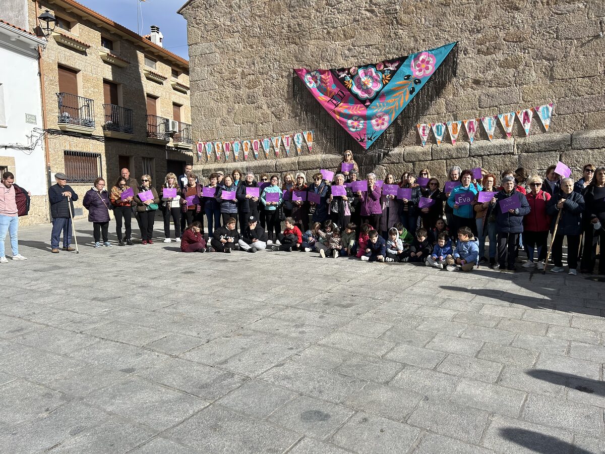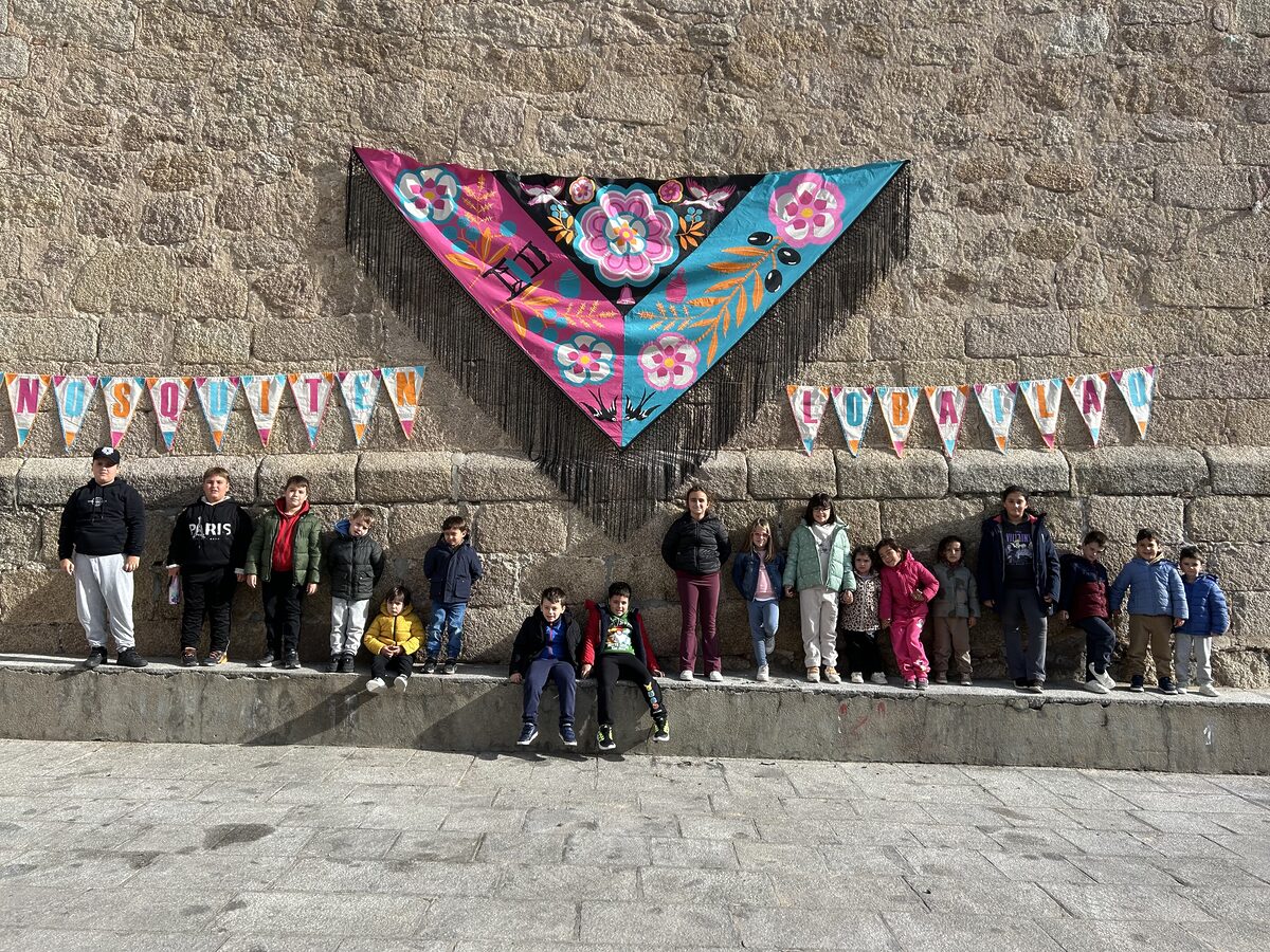 Después subimos a la plaza a ver el pañuelo tan bonito y especial que han hecho las mujeres, para ofrecer a nuestras vecinas pulseras moradas y escuchar un manifiesto sobre la importancia de entender este problema y la necesidad de cambiar esta situación. Antes de volver al colegio las mujeres nos regalaron unos pequeños bailes regionales.
